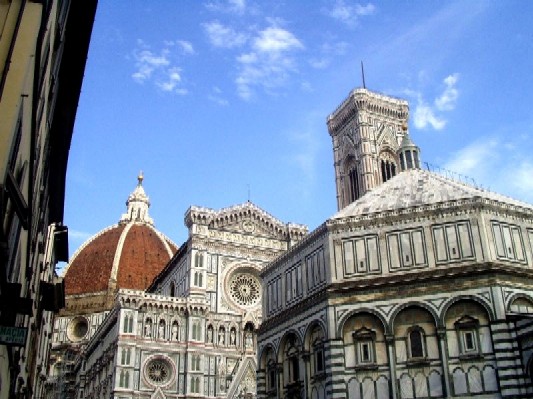 In the background is the Duomo, or the Cattedrale di Santa Maria del Fiore. I couldn't get it all because it's so huge - visible from every part of the city. And in the foreground is the battistero (or baptistry), where the Gates of Paradise are and Dante was christened. I go by there on my way to the supermarket. Must be nice... |