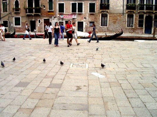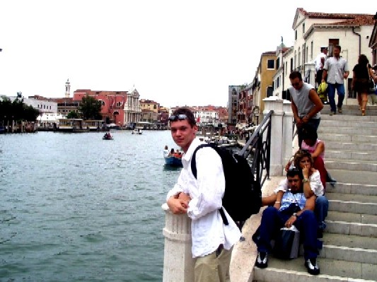 A guy from Pittsburgh took this for me while I was waiting for the train on the Canal Grande. While I was waiting, I actually caught the annual Venice Regatta. I wondered why all the gondoleros were dressed the same, only to find out hours later that regatta means "boat race." In English. |