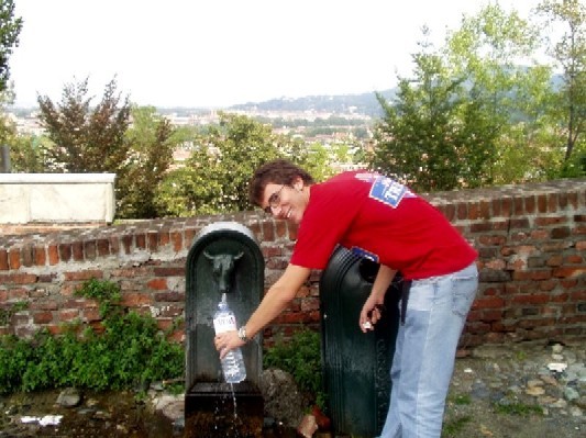 Zo was nice enough to fill up my water bottle at one of the bull's head fountains that are all over Torino. The water was acqua minerale naturale (mineral water), as opposed to acqua minerale frizzante (seltzer, or, sewer water) which I've inadvertantly bought about 20 times since being here. |