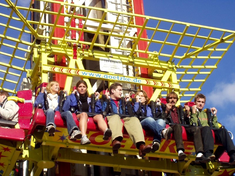 ![]() Jamie, Katie, Yoni and Whitney riding a free fall-type ride on Saturday. I sat it out after suffering about sixteen blows to the head on the Euro Star roller coaster an hour before. |
