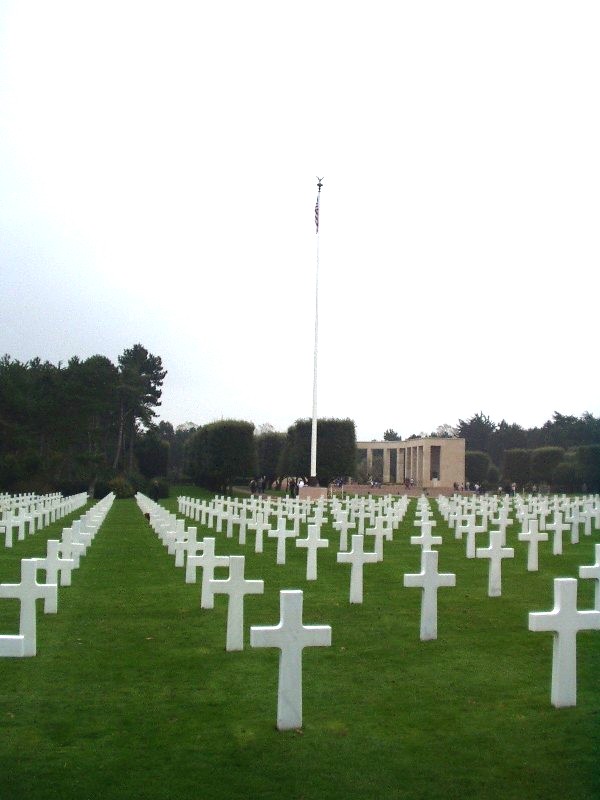 The American Cemetary at Normandy, where 9,387 perfectly lined-up white crosses mark the graves of the U.S. soliders who died during D-Day and in the other battles for the liberation of France. Apparently there's a John Miller buried here, which was just by chance the name of Tom Hanks' character in Saving Private Ryan. |